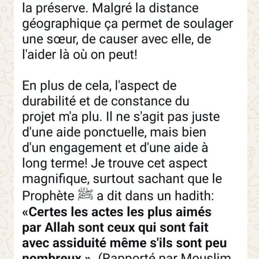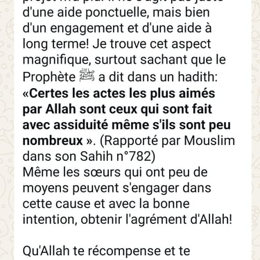 « Les œuvres les plus aimées par Allah sont: rendre un musulman joyeux, le soulager d'une peine, combler sa faim ou lui régler une dette ».